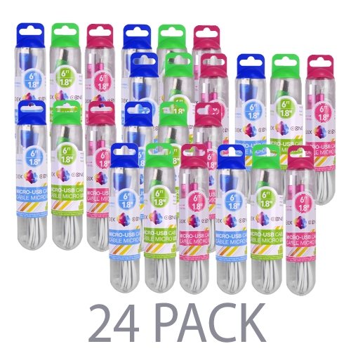 (24-Pack) 6′ Rock Candy Micro USB Cable (Pink/Green/Blue) |
