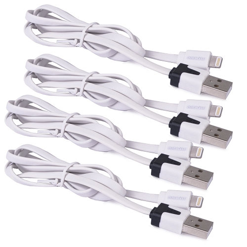| Duracell 4-Pack MFI Lightning to USB Charge & Sync Cables for iPhone 5/5s/6/6s/6 Plus/6s Plus & iPad Air 2 (2×3′ & 2×6′) | ||||